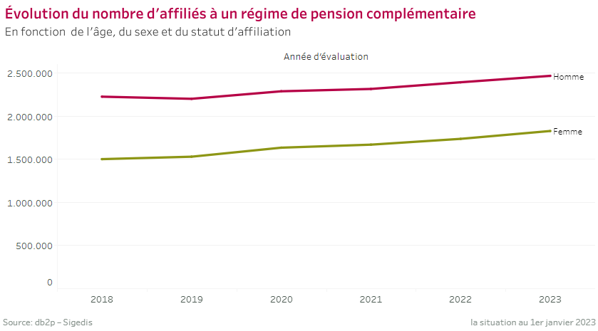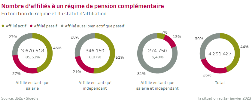 Au 1er janvier 2023, 4.291.427 salariés et indépendants étaient affiliés à un plan de pension complémentaire par l’intermédiaire de leur emploi actuel ou d’un emploi précédent. Cette pension supplémentaire leur est versée lorsqu'ils prennent leur pension.